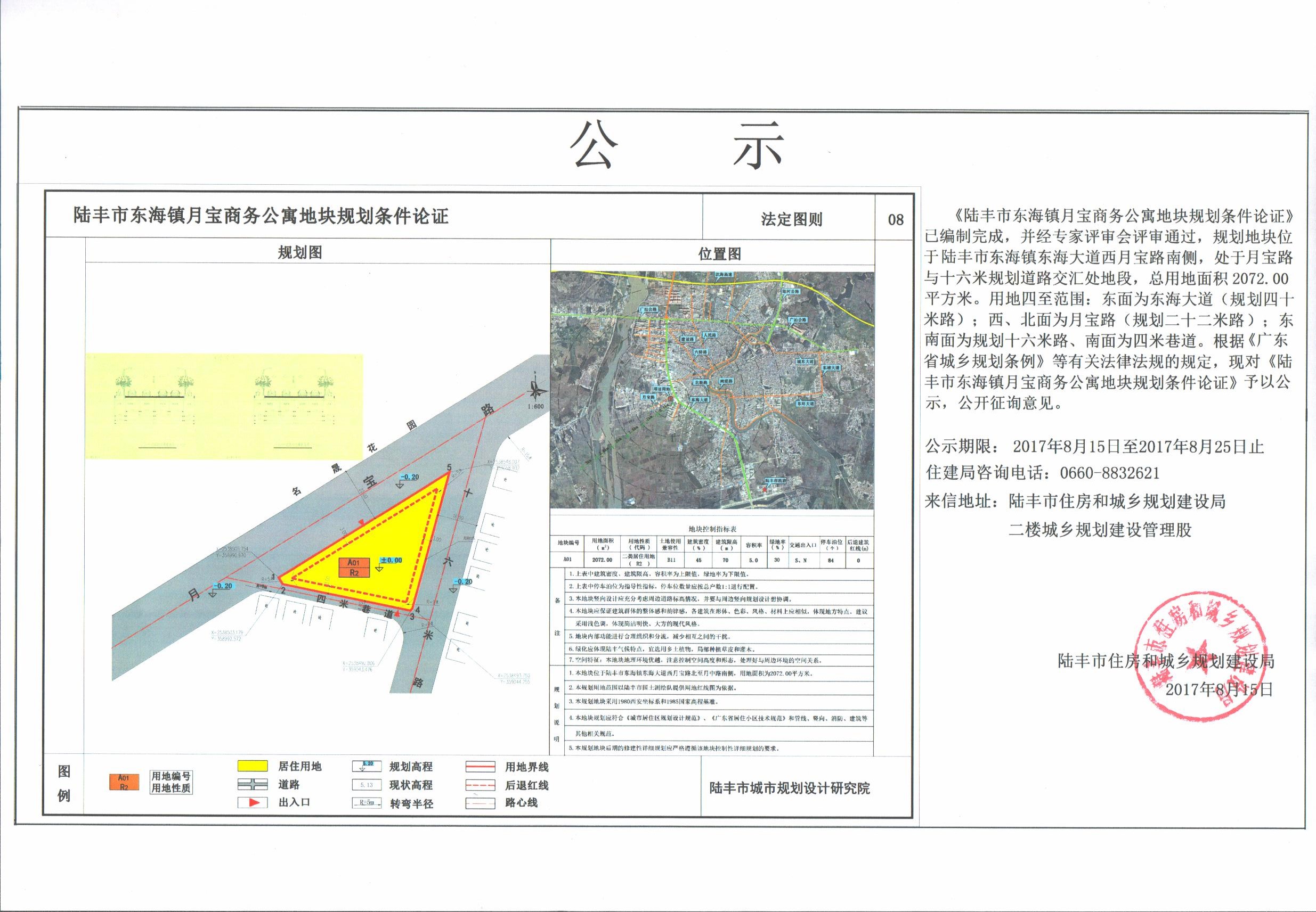 陸豐市東海鎮(zhèn)月寶商務公寓地塊規(guī)劃條件論證公示